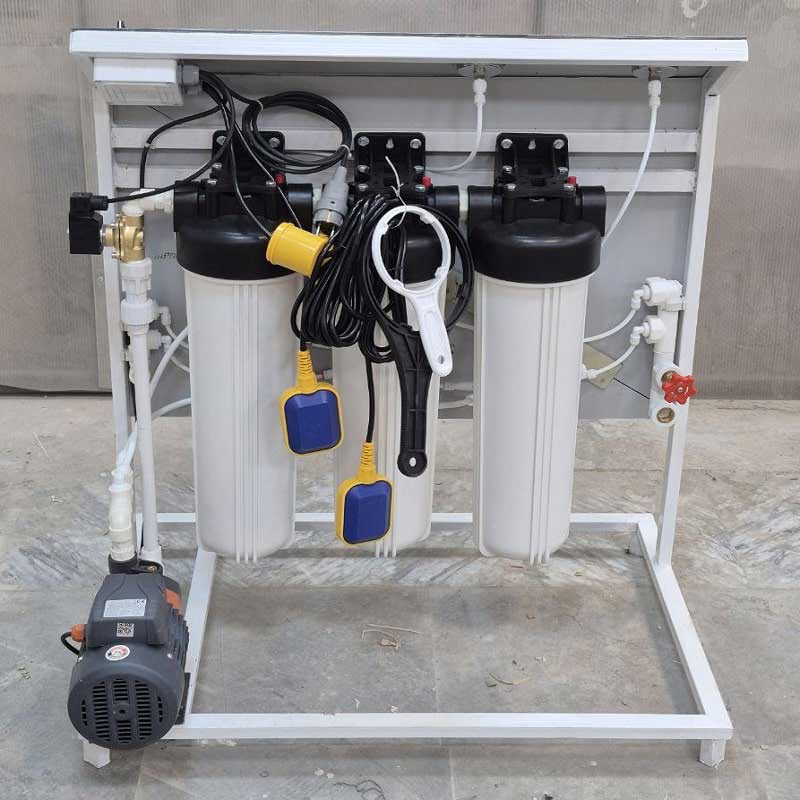 تصفیه آب نیمه صنعتی فوق دارای پمپ یک اسب پر فشار است. حتماً می پرسید اسب در اینجا به چه معنا است. اسب بخار واحدی است برای سنجش توان موتور. طبیعتا هر چه عدد توان بیشتر باشد، قدرت پمپ آب بیشتر است.